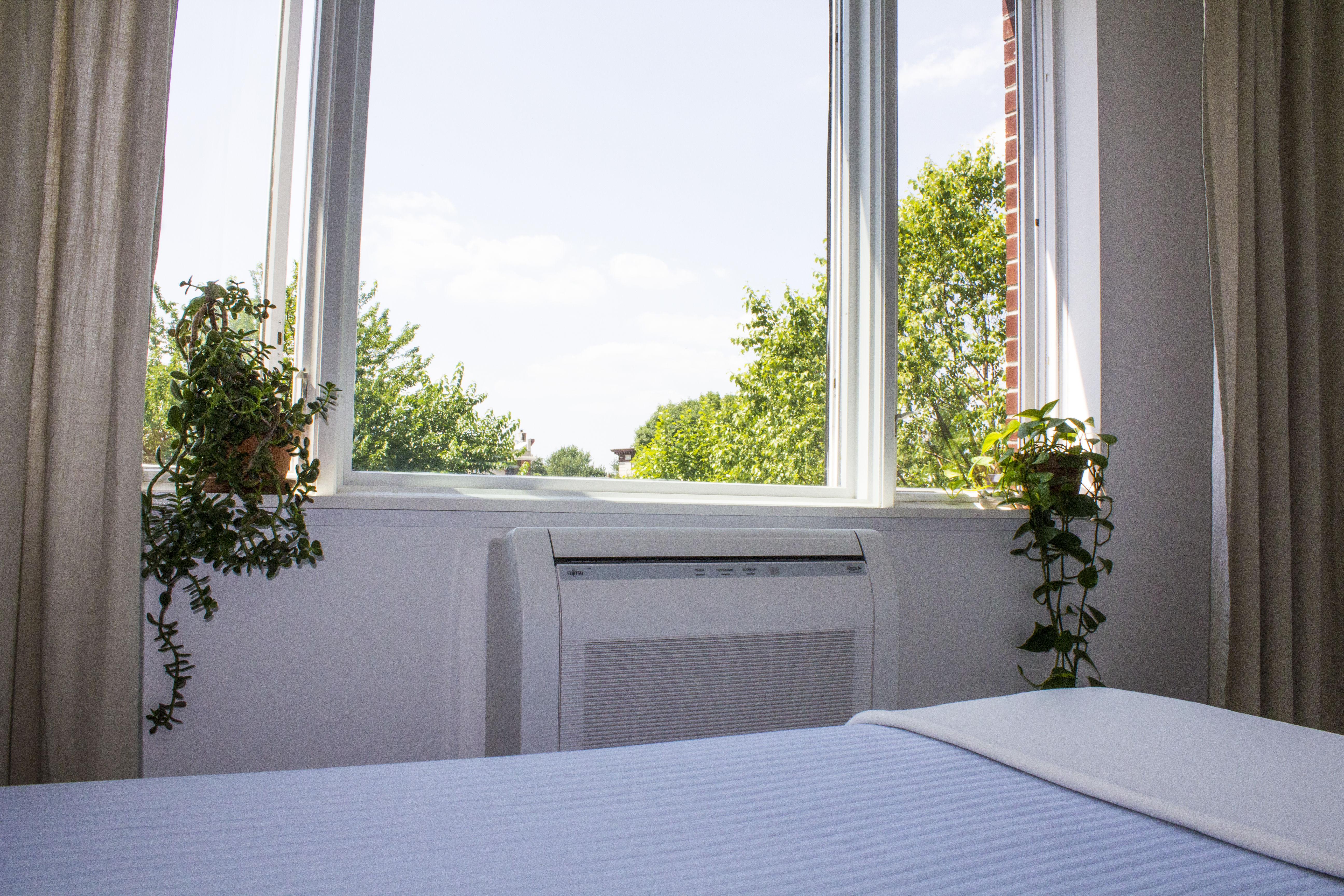Completed installation of a conditioner in a bedroom.
